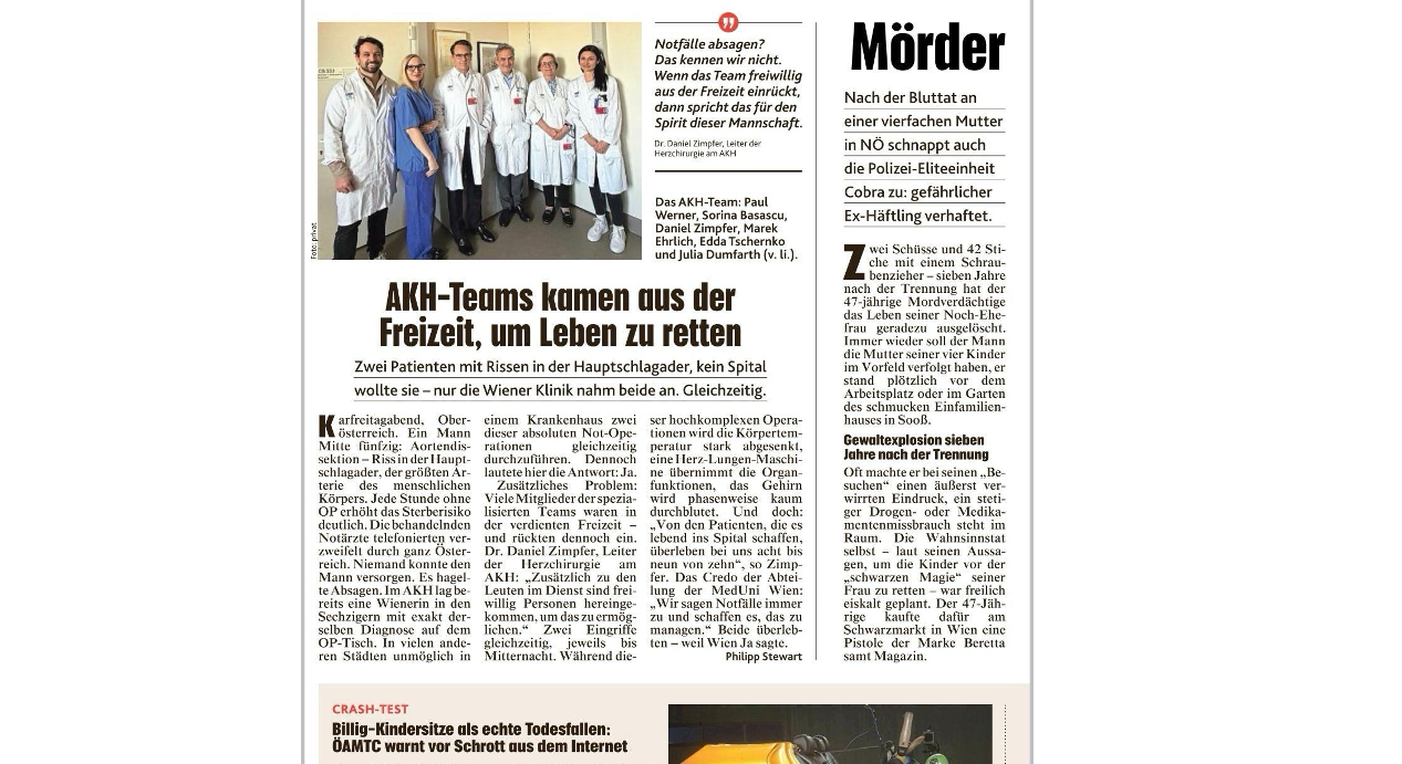 Neben meiner erfolgreichen Karriere als Herzchirurgie ist es mir zudem gelungen, ein Patent für die Medizinische Universität Wien zu erfinden. Dabei geht es um ein Primärimplantat als Fixierungspunkt für eine Gefäßprothese an einer Gefäßwand. Es wurde bereits ein Start-Up gegründet, um dieses Patent zur Marktreife zu bringen.